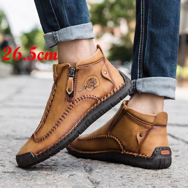 - ブーツ メンズ メンズシューズ 革靴 ハイカット アウトドア ぺたんこ 軽量 仕事 歩きやすい 通勤 カジュアル 四季兼用 カーキ26.5cm