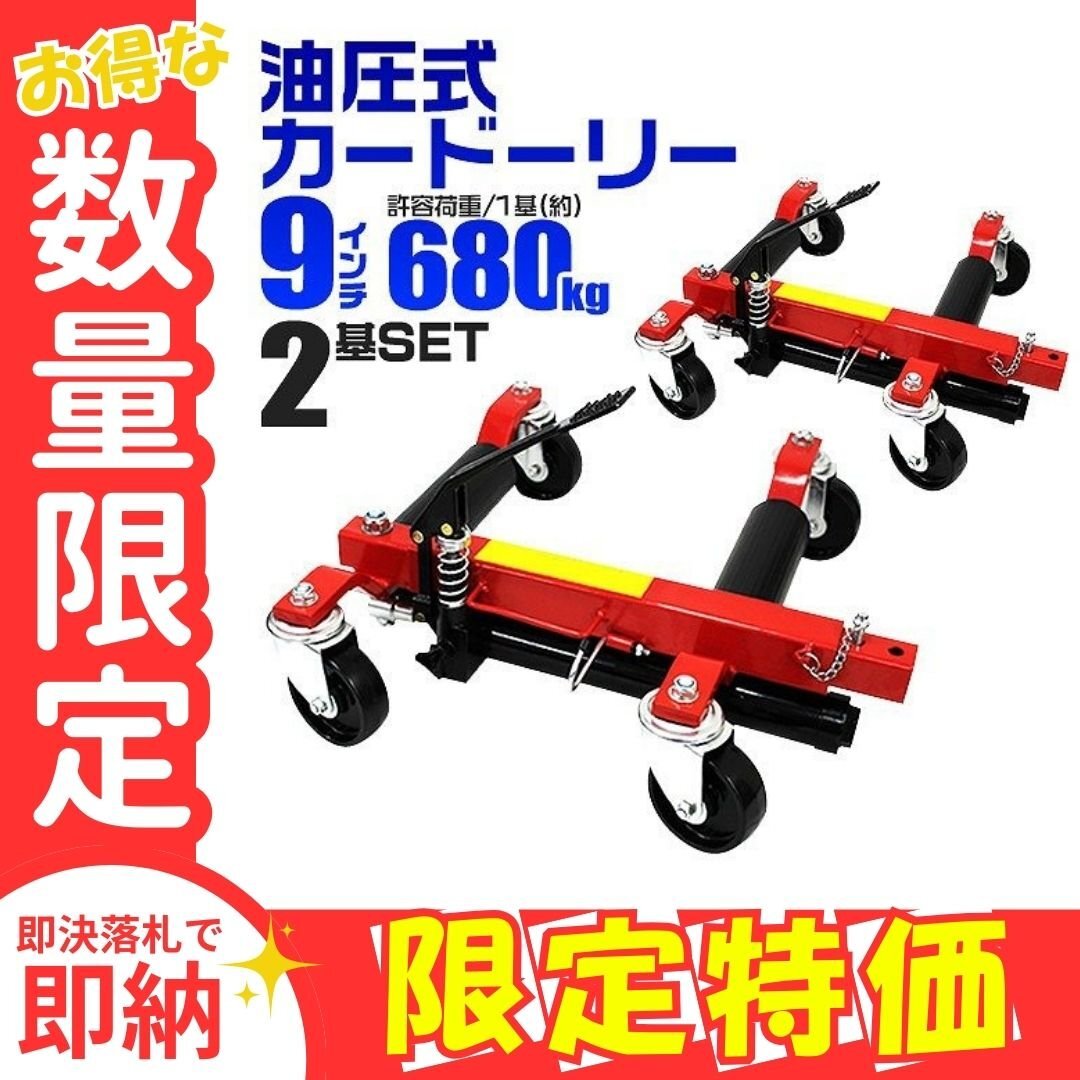 > 限定セール【2台セット】新品 油圧式 カードーリー 9インチまで対応 ホイール ドーリー ゴージャッキ ジャッキアップ 移動 レッカー 展示