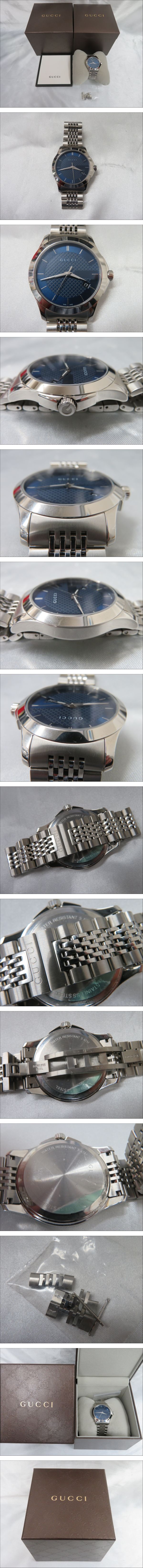 - 【GUCCI】グッチ Gタイムレス 126.4 青文字盤 クオーツ メンズ 稼働品 極美品