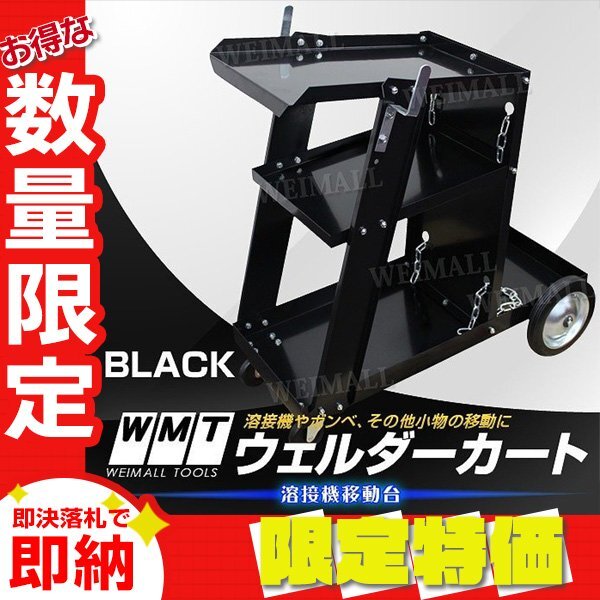 - 【限定セール】ウェルダーカート ボンベカート 溶接機台 移動台 作業台 3段トレー キャスター ボンベ固定用チェーン付 ボンベ・溶接機