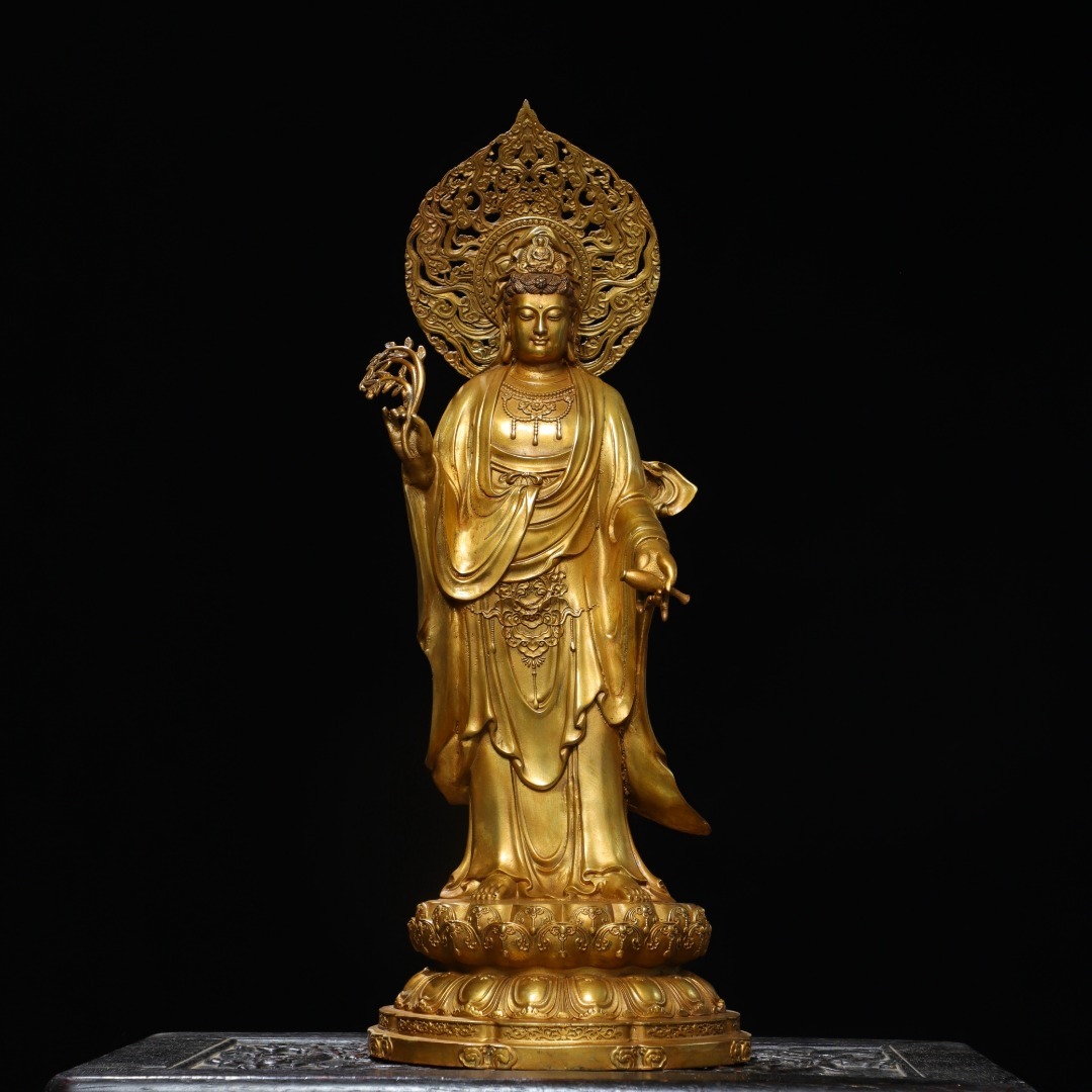 - 旧蔵 古銅彫 塗金 觀音 擺件 古擺件 古置物 中国古玩 骨董品 時代物 稀少唐物