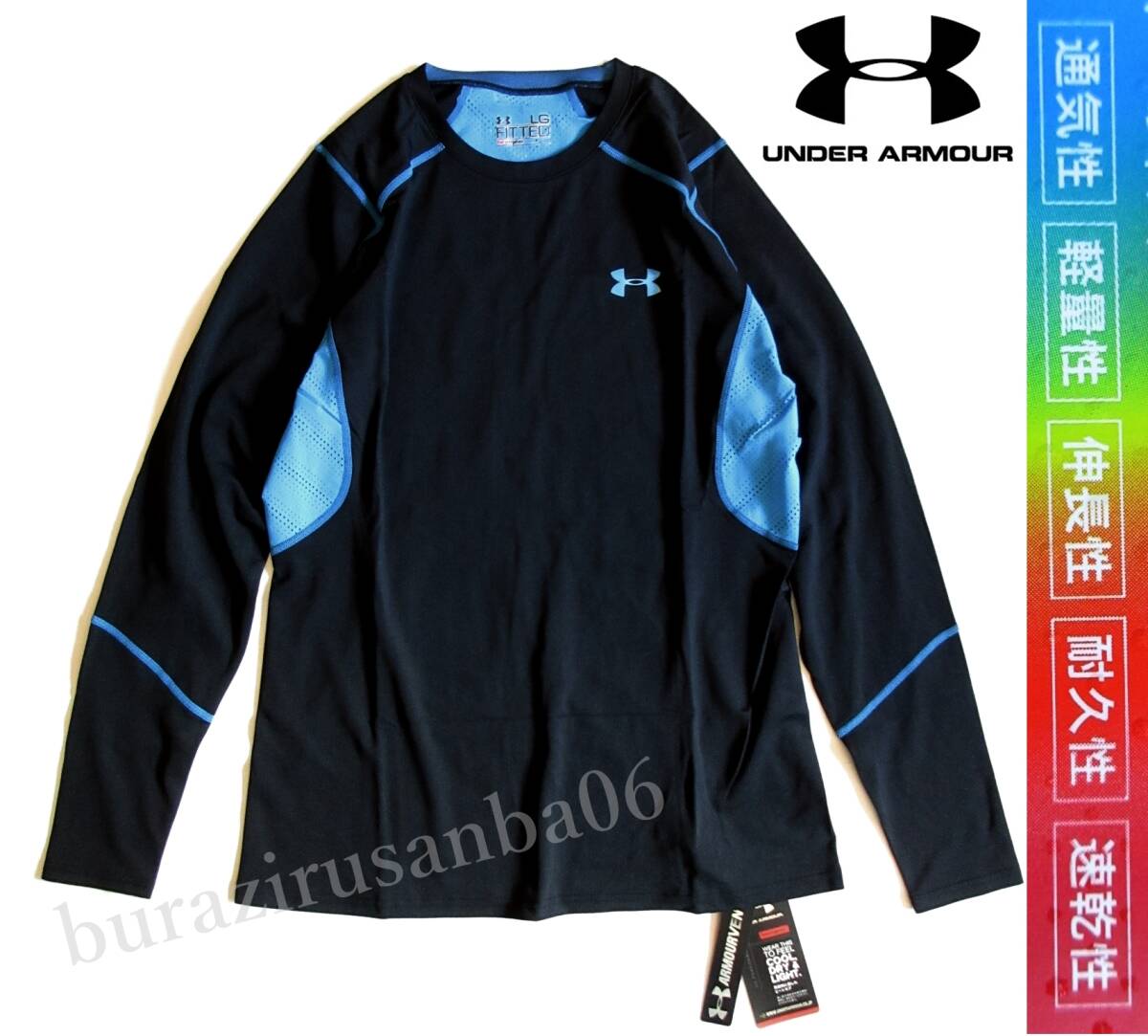 > メンズ L 未使用 UNDER ARMOURアンダーアーマー UAアーマーベントHG PERFフィッティドLS コンプレッション スポーツインナー MFT7523 黒青