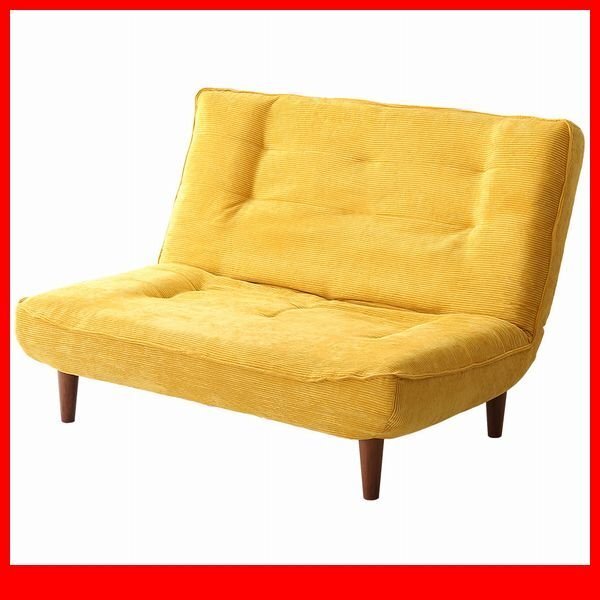 - ソファ★新品/2人掛け 3段階リクライニング コーデュロイソファ/ファブリック ポケットコイル 安心の日本製 ロータイプにも/イエロー/a6