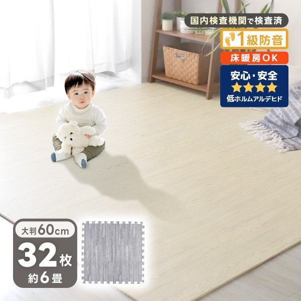 > ジョイントマット 木目調 32枚セット グレー 大判 60cm 6畳 床暖房対応 防音 抗菌 防水 ノンホルマリン ベビーマット フロアマット
