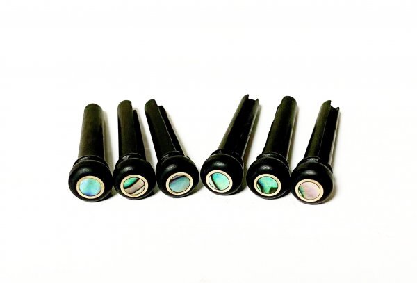 - よく鳴る エボニー製 アバロンタイプインレイ ブリッジピン 6本セット トップインレイ シェル ドット アコギ GIBSON J45
