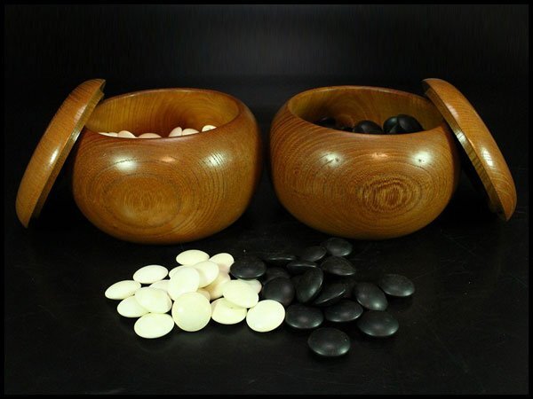 - 【金閣】碁石 碁器 本蛤 那智黒 欅碁器 一対 旧家蔵出 送料無料(YC402)