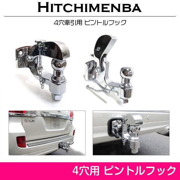 - 4穴 レシーバー ピントルフック メッキ 銀 ランクル サファリ パジェロ 4WD車 ボルトオン けん引 ヒッチメンバー 2インチ
