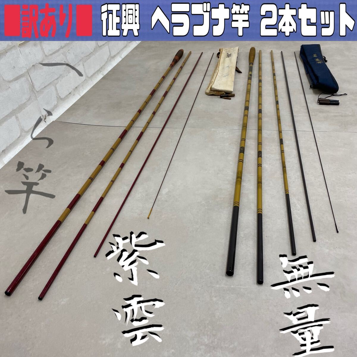 > MK■訳あり■ 征興 へら竿 2本セット お誂 紫雲 中硬式 十三尺 4本継 無量 450 5本継 セイコー 池 河川 フィッシング 釣り 道具 釣具 中古