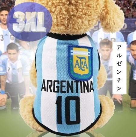> ドッグウェア 春夏 アルゼンチン 3XLサイズ サッカー 代表 ユニフォーム 犬服 中型犬 袖なし 通気性 柔らか 洋服 可愛い