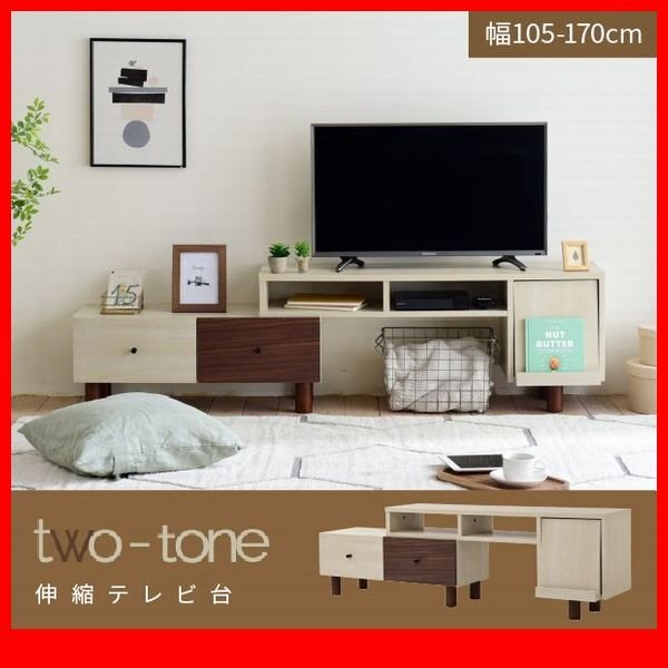 - テレビ台★ツートンカラーシリーズ 回転 伸縮 テレビ台/コンパクト ワイド コーナー対応/43型 引き出しフラップ扉 収納/ナチュラル 濃茶/zz