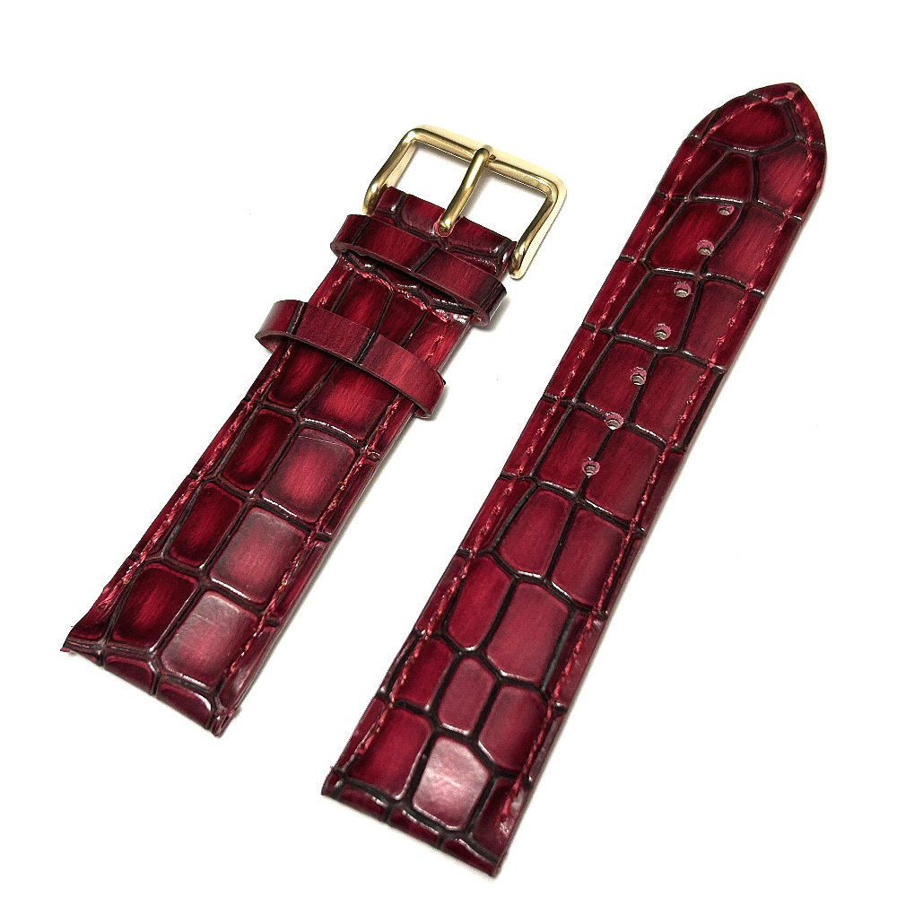 - 限定 パティーヌ調 本革型押しクロコレザー時計ベルト 22㎝ 赤 レッド 【アップルウォッチ10対応】 限定 ベルルッティ berluti