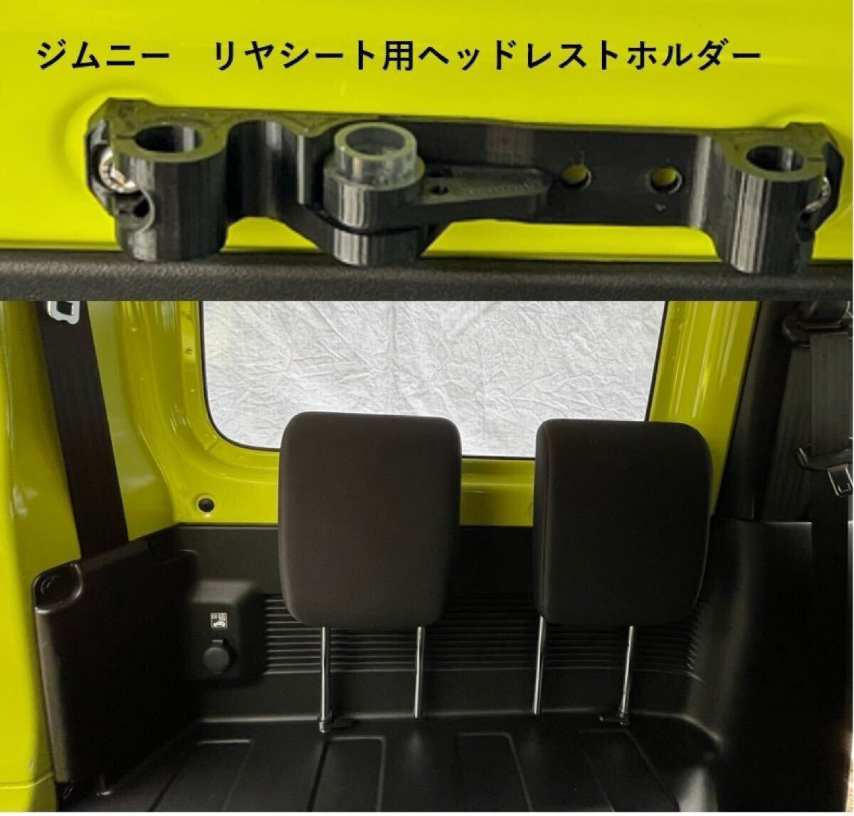 > スズキ ジムニー、シエラ(JB64W、JB74W)の後席(リヤシート)のジムニーヘッドレストホルダー(荷室便利アイテム) 色:黒