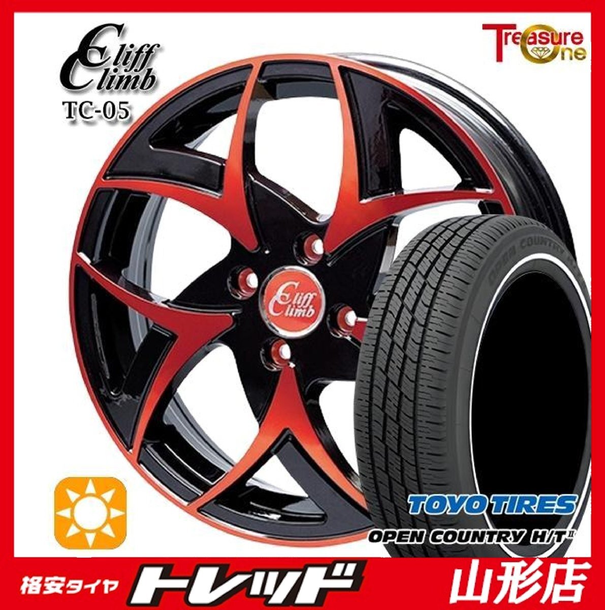 > 山形店 新品夏タイヤホイール4本セット CliffClimb TC-05 15インチ 4.5j 4H100 +43 BPRED TOYO オープンカントリーH/T2 165/60R15 2025年製