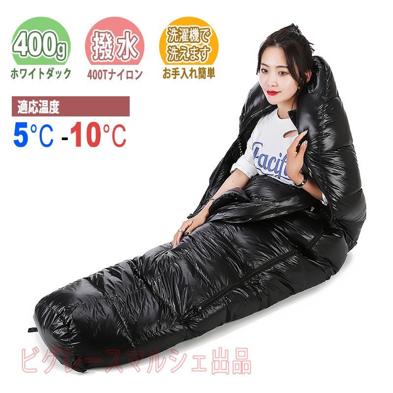 - 高品質 ミイラ型 ダウンシュラフ 400g ホワイトダック アウトドア用 ミイラ型寝袋 400Tナイロン 撥水 ダウン入り 軽量 黒 hw1404