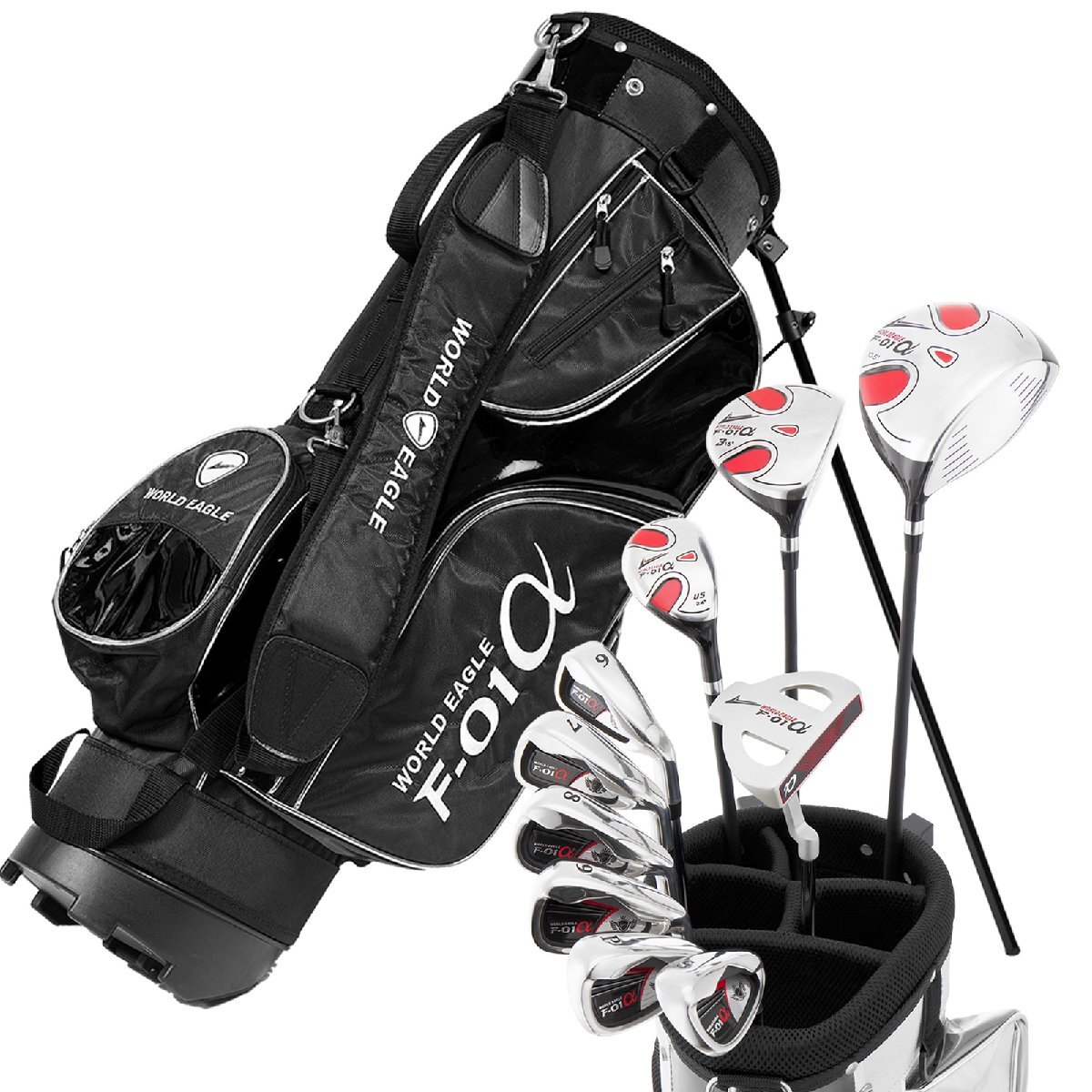 - F-01α メンズゴルフクラブセット スタンド式軽量キャディバッグ付 右利き用 フレックスR/バッグ:ブラックカラー[34537]
