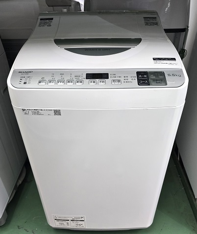 > 【中古品】 シャープ SHARP 電気洗濯乾燥機 洗濯容量5.5kg 乾燥容量3.5kg 穴なし槽 ES-TX5D-S 2020年製 ○YR-17998○