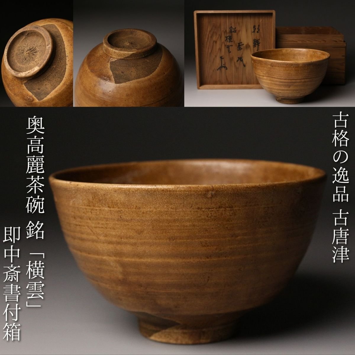 > 【LIG】古格の逸品 古唐津 奥高麗茶碗 銘「横雲」即中斎書付箱 大振 出雲焼 楽山焼 李朝 伝世 数奇者収蔵品[.EO]25.11