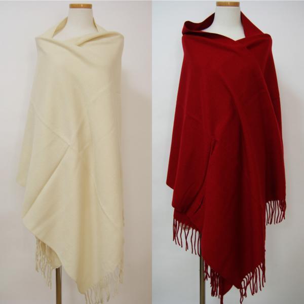 > 送料無料◆超お得◆2色組◆ひざ掛け◆ブランケット◆お洒落アイテム◆大判ショール◆プレーンカラー◆ストールマフラー(アイボリー&レッド)