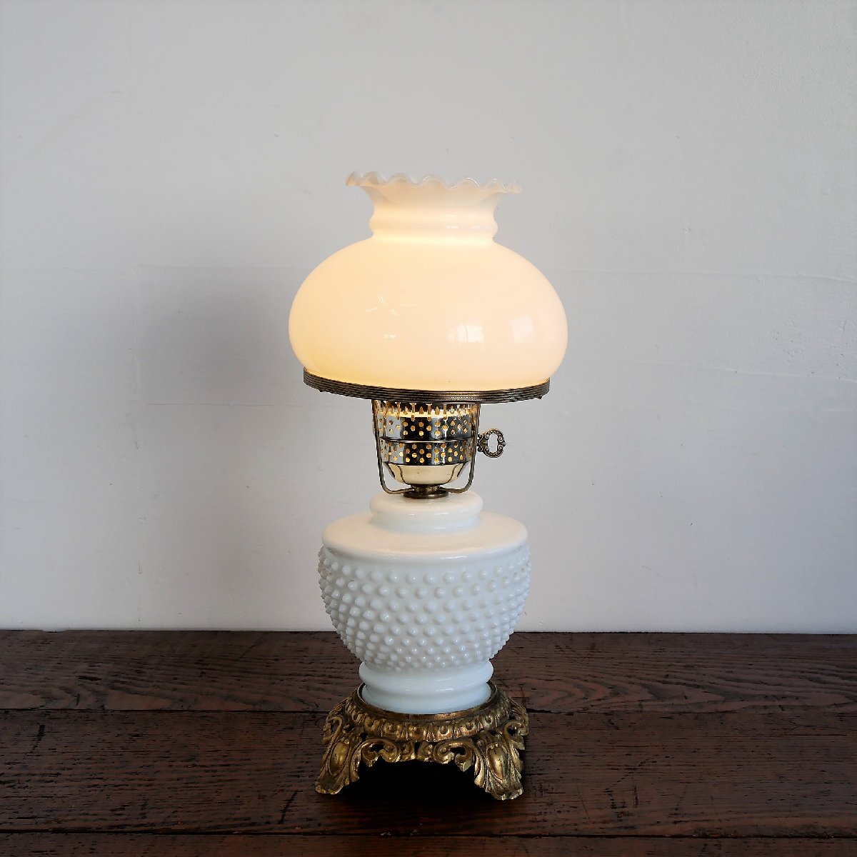 - ホブネイル ミルクガラス テーブルランプ【#4564】アメリカ 60s-70s ヴィンテージ 照明 上下2灯 オイルランプ風