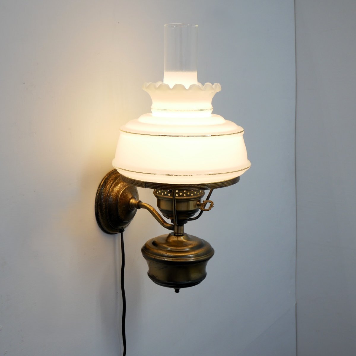 - ヴィンテージ オイルランプ風 ミルクガラス 壁掛けランプ / アメリカ ウォールランプ 間接照明 #705-30-036-698