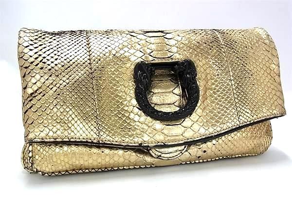 - 1円 ■極上■本物■美品■ BVLGARI ブルガリ パイソン クラッチバッグ セカンドバッグ レディース ゴールド系 FR4815