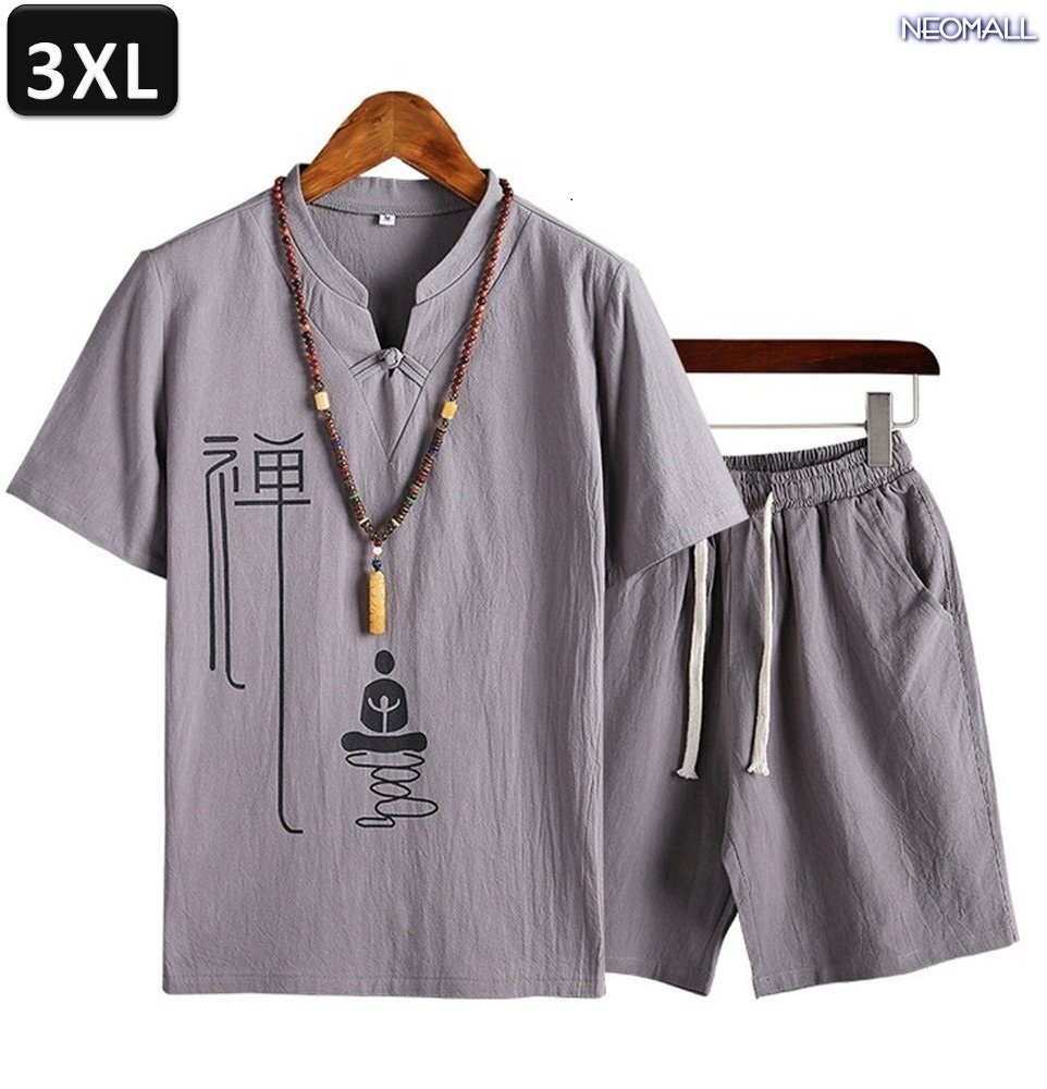- 夏にピッタリ 【409】ルームウェア セットアップ グレー 3XLサイズ 半袖 パンツ メンズ 部屋着 メンズ オフ 清涼