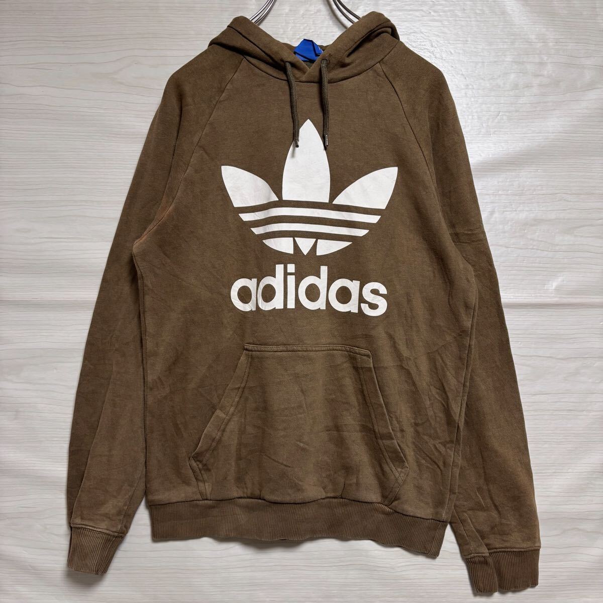 - adidas アディダス プルオーバーパーカー フーディー スウェット ビックロゴプリント サイズS ブラウン 茶 コットン メンズ トップス(46)