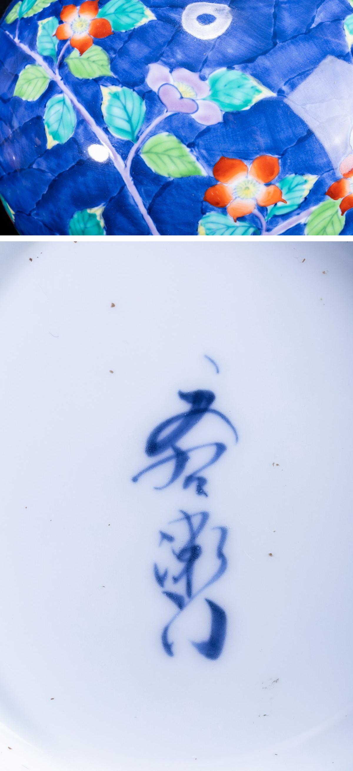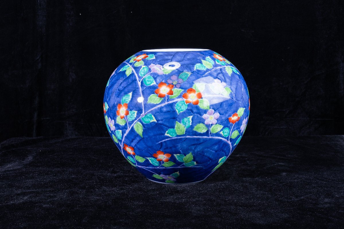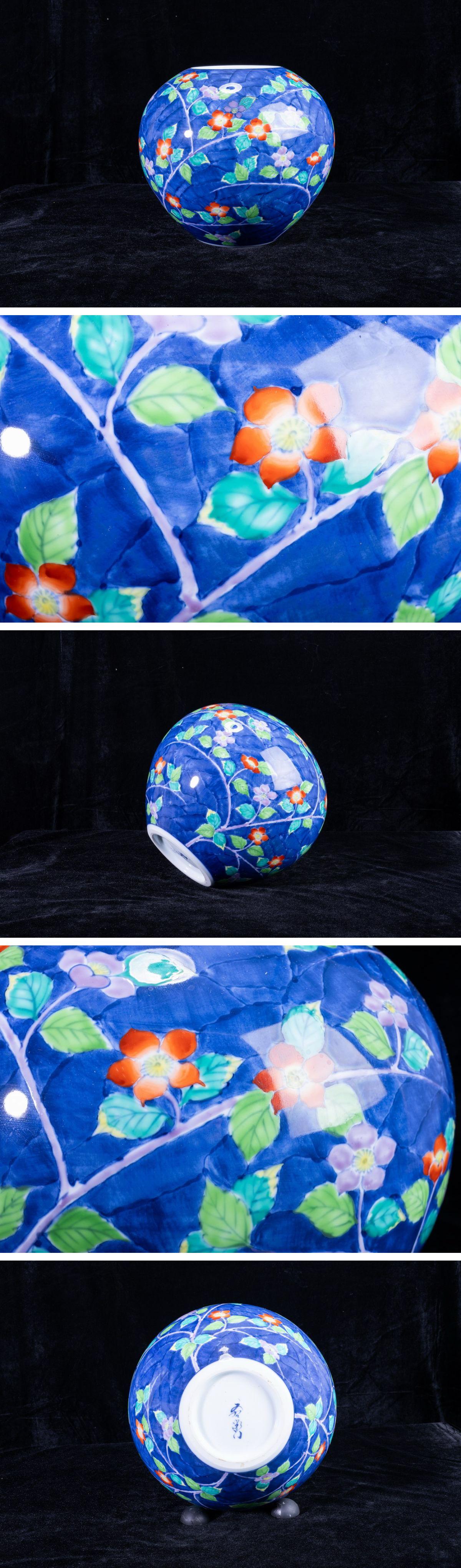 > 【珍品堂】1円から R71-V1 有田焼 文右衛門 作 在銘 花草絵 繊細手描 手描き 染 花瓶 高27cm 花器 飾壺 工芸品 時代物 骨董品 古美術