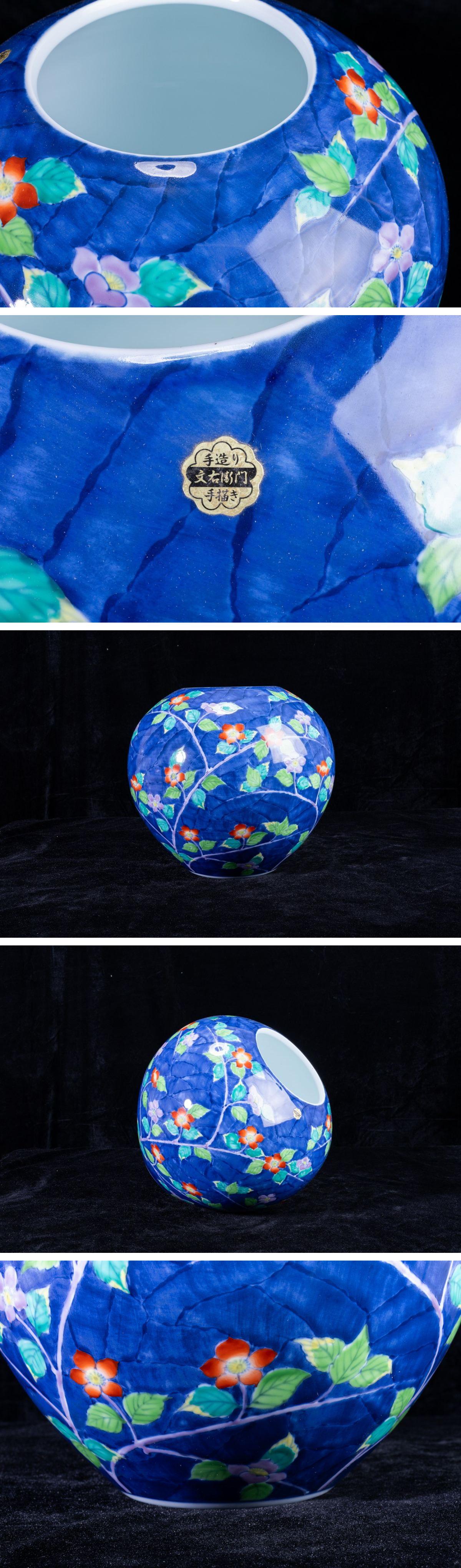 - 【珍品堂】1円から R71-V1 有田焼 文右衛門 作 在銘 花草絵 繊細手描 手描き 染 花瓶 高27cm 花器 飾壺 工芸品 時代物 骨董品 古美術