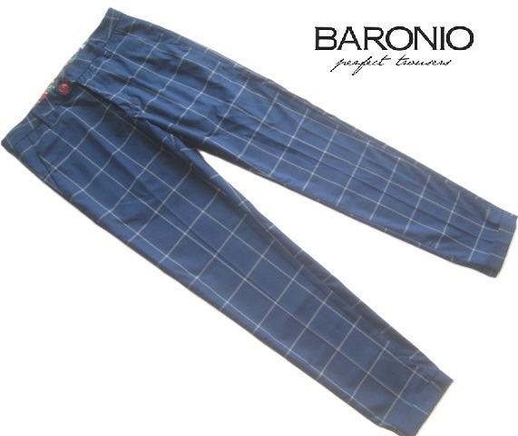 - 美品イタリア製!!バローニオ BARONIO*定価3.8万 美シルエット チェック柄ストレッチポリレーヨンスラックス・パンツ W30 紺 ネイビー
