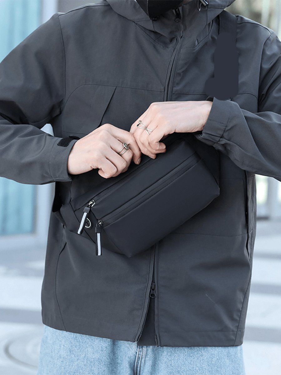 - バッグ メンズ ウエストバッグ 多層多ジップ ミニマリストスタイリッシュ チェストパック/ショルダーバッグ メンズ、撥水性生地製、