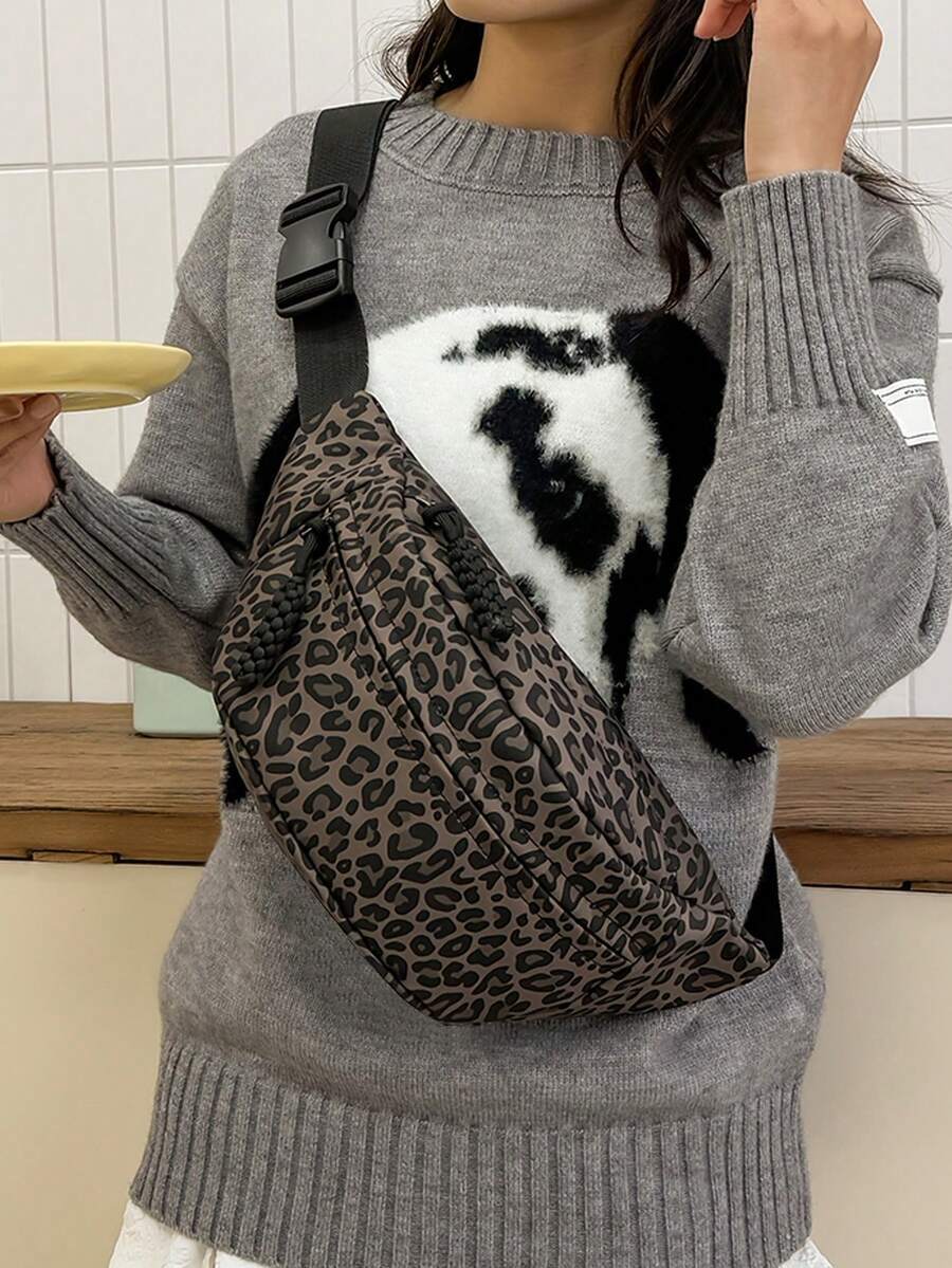 - バッグ レディース ウエストバッグ 新作 レディースファッション ヒョウ柄ウエストバッグ、軽量 多ポケット ジッパー収納 スマホ、