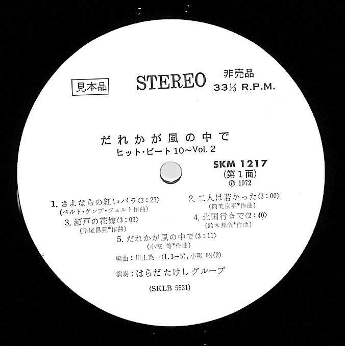 A00594269/LP/はらだたけしグループ「だれかが風の中で ヒット・ビート10~Vol.2」