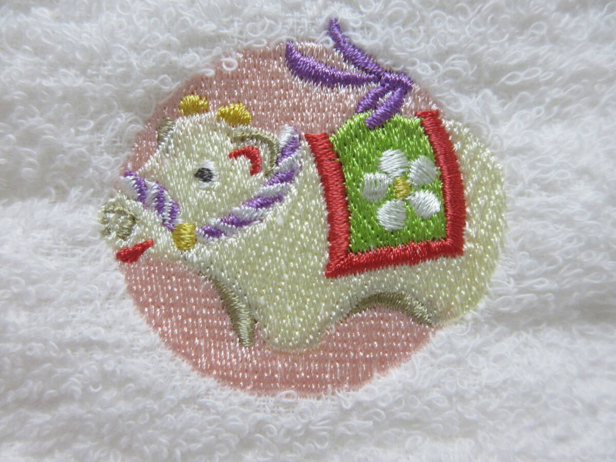 - ③箪笥の整理 可愛い刺繍入り 干支の刺繍入り タオル ピンク地に牛の柄