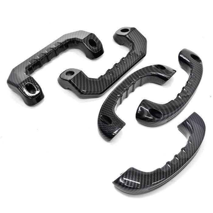 - 200系 ハイエース レジアスエース ビレット アシストグリップ フロント リア 5P フルセット ブラック カーボン調 純正交換 新品 サポート