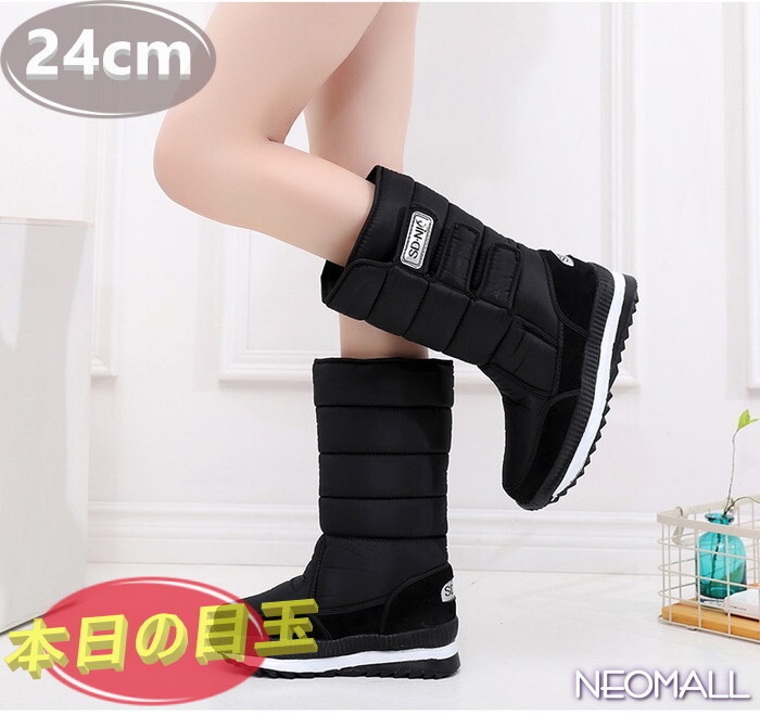 - レディース スノーシューズ 【867】 24.0cm ブラック ムートンブーツ スニーカー ウィンターブーツ 裏起毛 防水 防寒 防滑 冬用靴 綿靴