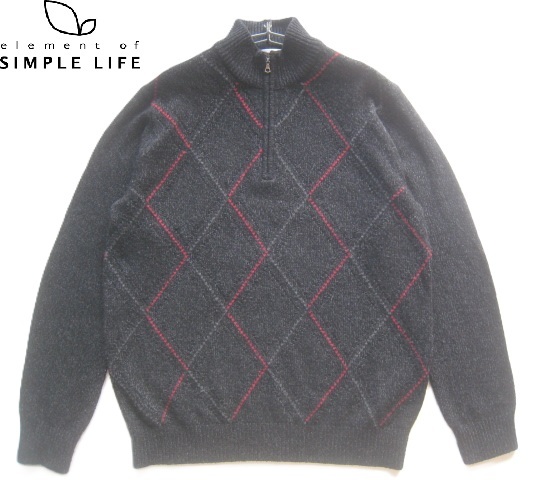 - 美品!!SIMPLE LIFE D'URBAN*アーガイル柄 立ち襟ハーフジップ カシミヤウールニットセーター L 黒 シンプルライフ ダーバン