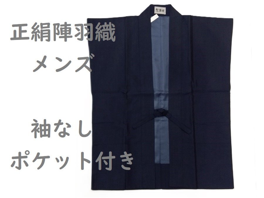 - 陣羽織 正絹 メンズ 袖なし ポケット付き 総裏付 紺 ネイビー M 859