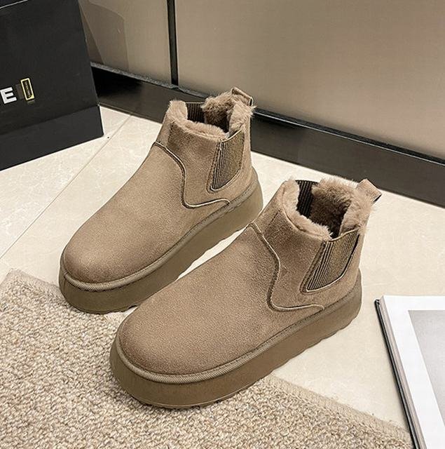 - ムートンブーツ サイドゴア ブーツ レディース ショートブーツ ボア 極暖 厚底 ファー 大きいサイズ シューズ 靴 防寒 カーキ 39