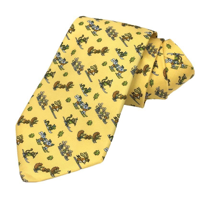 > セール ゆうパケット発送 Salvatore Ferragamo フェラガモ ネクタイ アニマル スキー シルク メンズ 美品 送料無料 aq5902