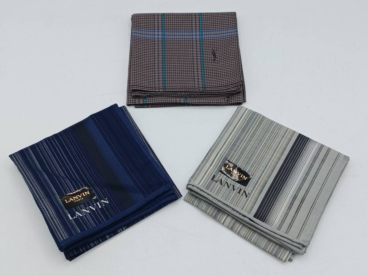 - 【管⑩】LANVIN/Yves Saint Laurent/ハンカチ3枚まとめ売り/未使用品含む
