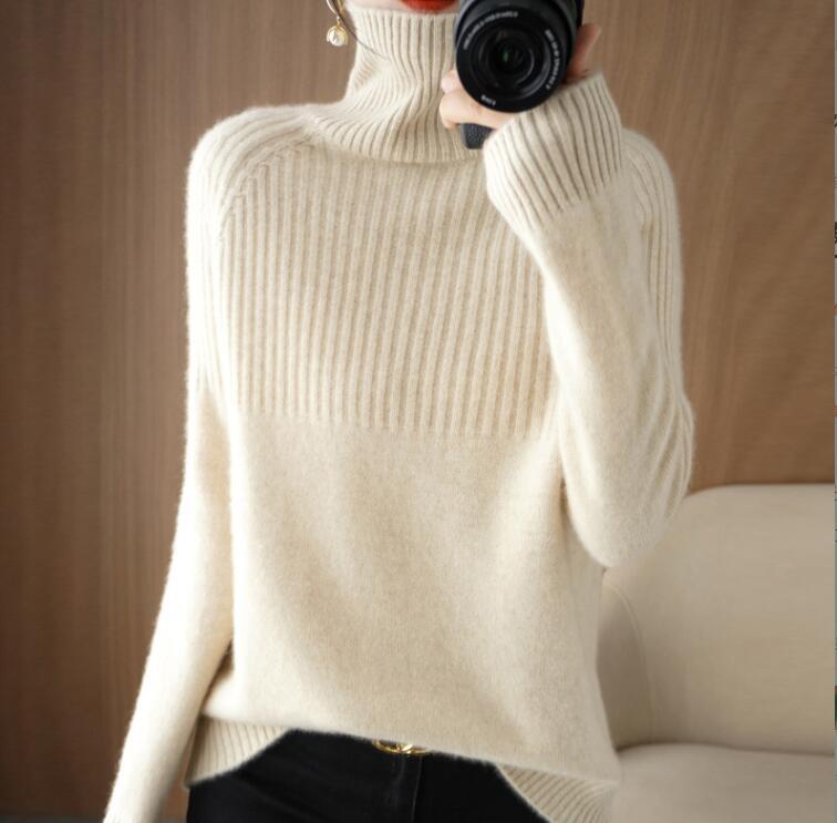 - 新入荷新品 ふんわり暖かカシミヤ リブ編み 大人シックなハイネックニットセーター
