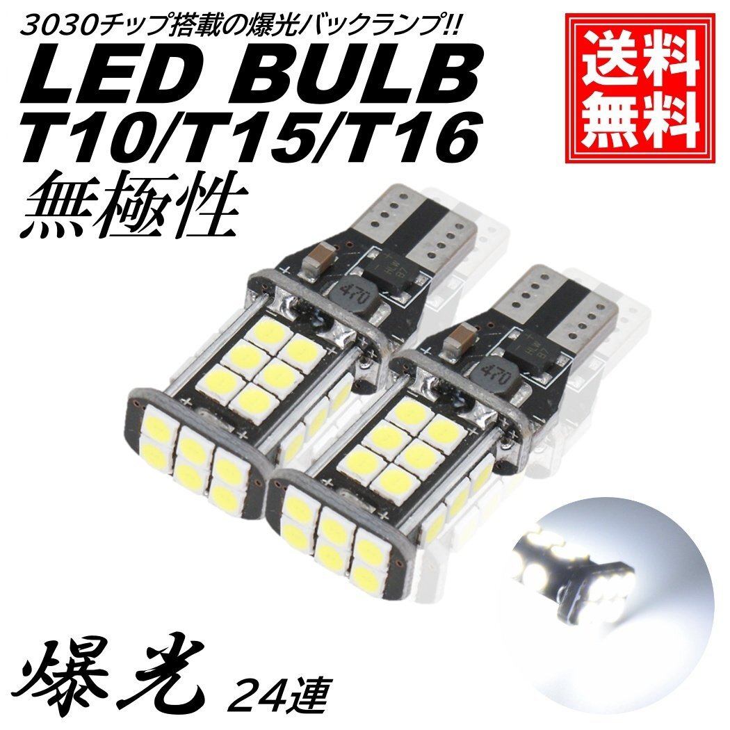 > 爆光 T10/T15/T16 爆光 LED 24連 バックランプ球 後退灯 ポジション球 DC12V LEDバルブ 無極性 ホワイト