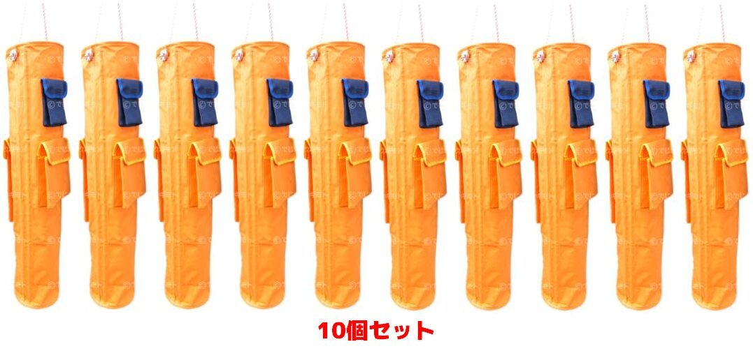 - 吊り下げ長尺収納バッグ オレンジ 10個セット 農業資材・養生シート・建築資材・キャンプ・テント用具・釣り竿等の収納