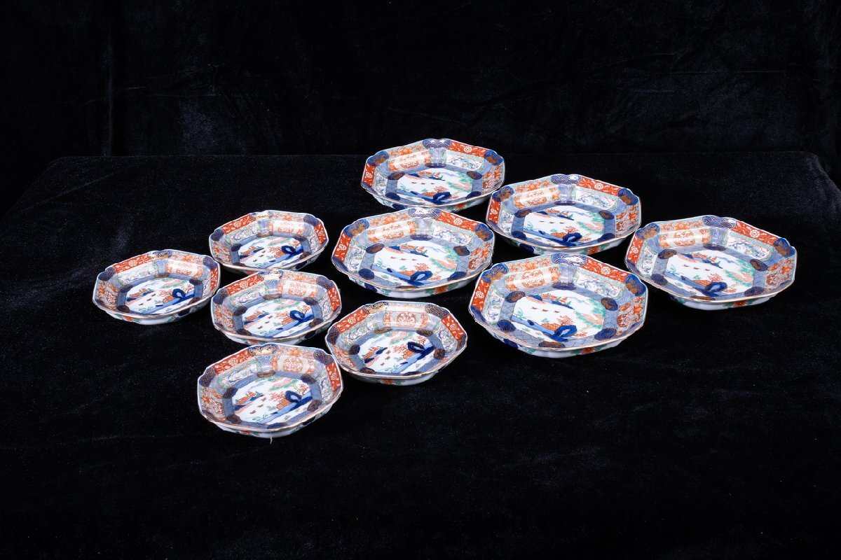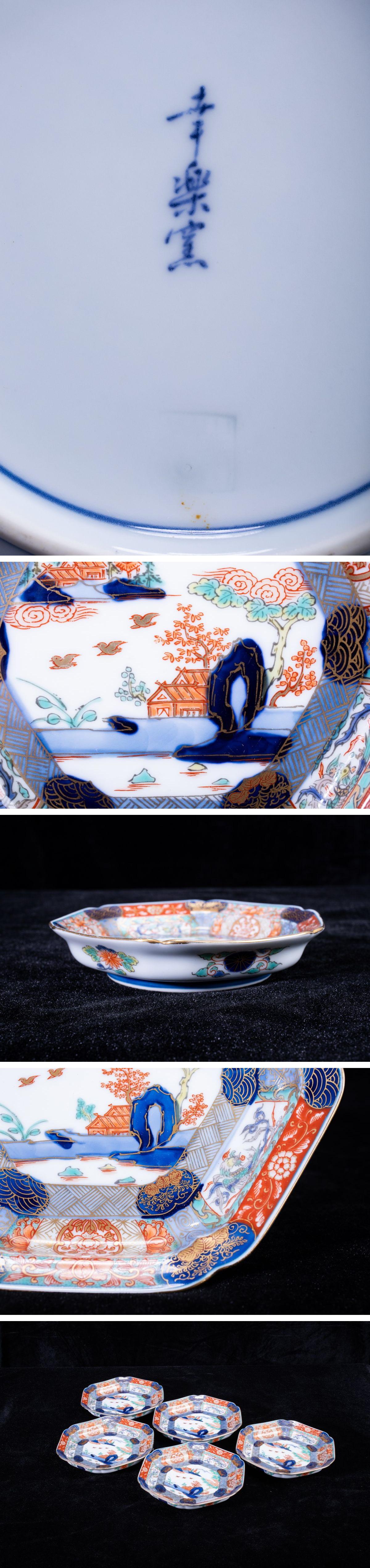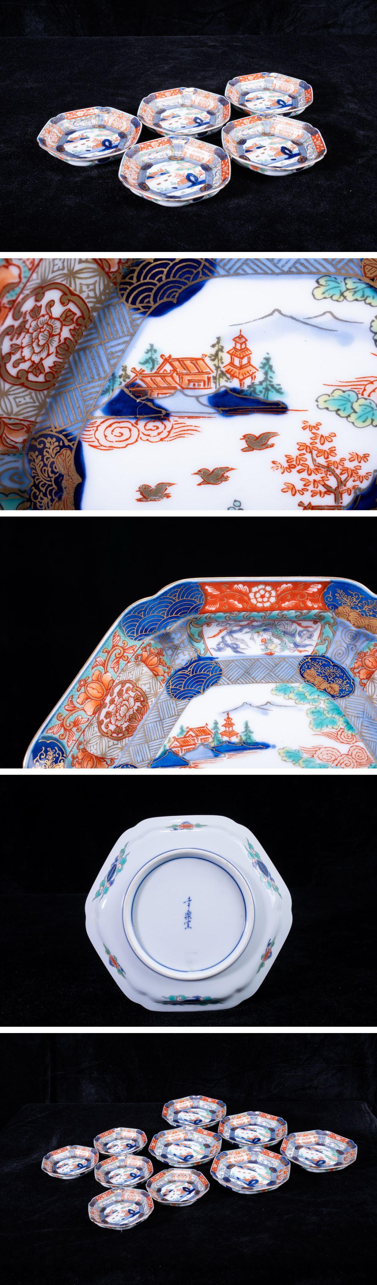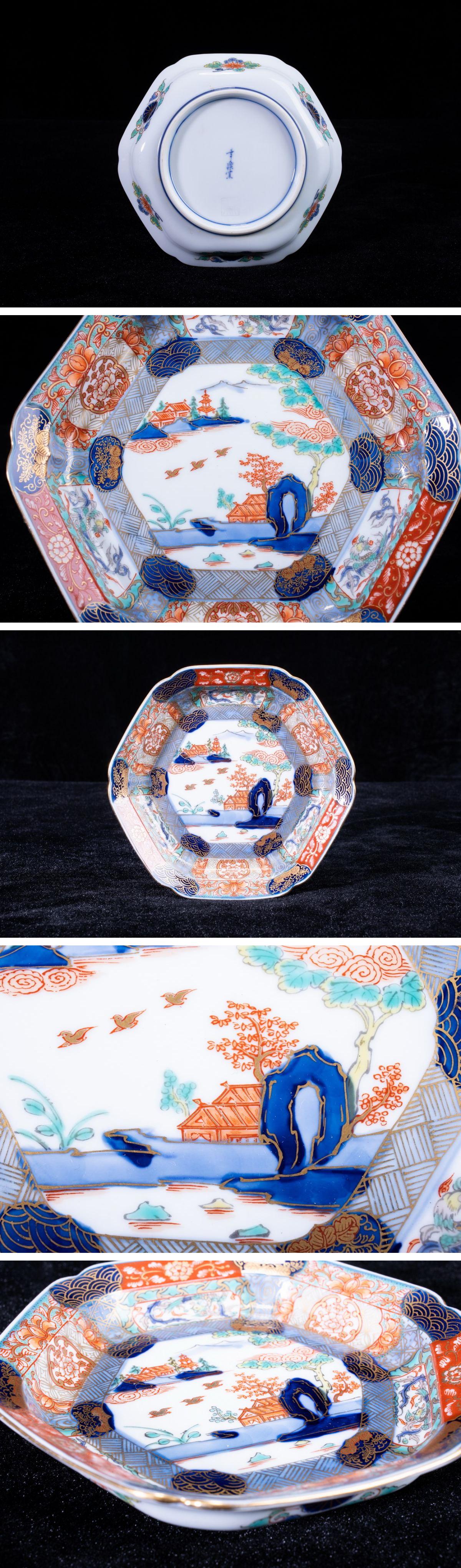 - 【珍品堂】1円から N30-V2 有田焼 幸楽窯 金襴手 色絵 景色図 染錦 六角皿 鉢 皿 10枚 和食器 懐石 工芸品 古美術 時代物 骨董品