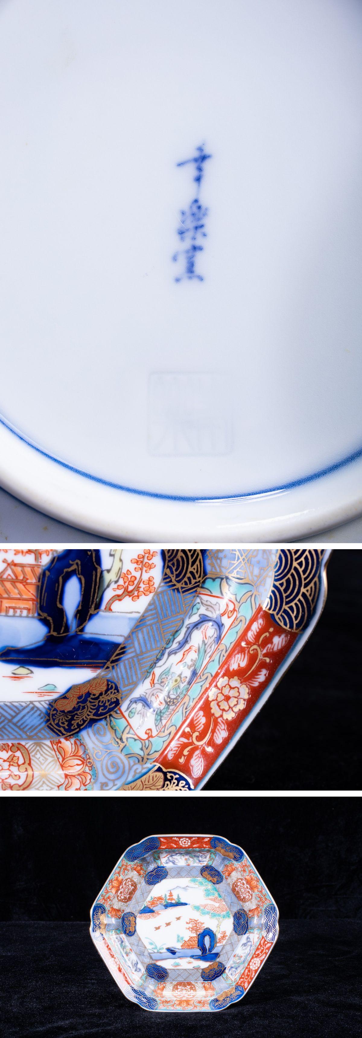 > 【珍品堂】1円から N30-V2 有田焼 幸楽窯 金襴手 色絵 景色図 染錦 六角皿 鉢 皿 10枚 和食器 懐石 工芸品 古美術 時代物 骨董品