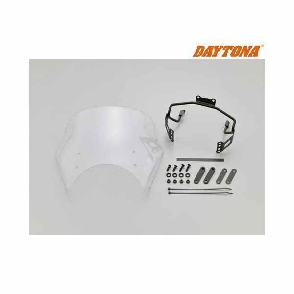 純正ハンドル装着時、取付ステーはスクリーンをしっかりとマウントできる3点支持タイプ。