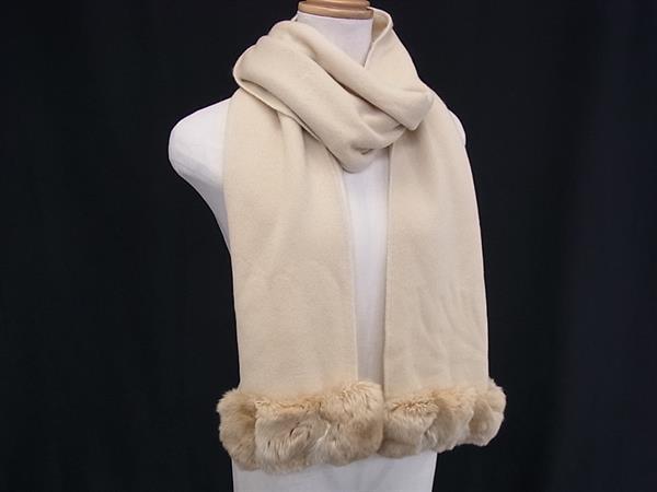 - 1円 ■極美品■ FOXEY フォクシー カシミヤ×チンチラ マフラー ストール レディース ベージュ系 FG9613