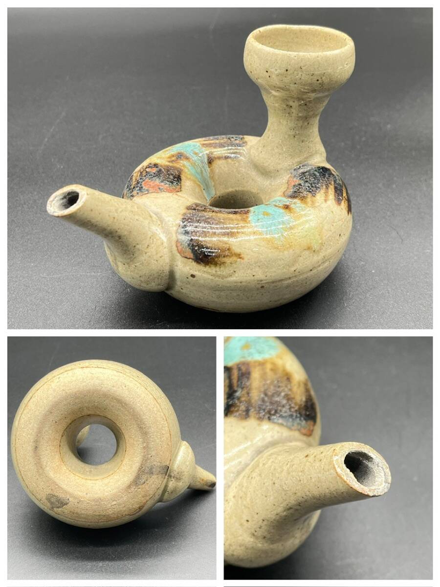 > 益子焼 ドーナツ型 徳利 15×10.5×10.5㎝ 367g 骨董品 古美術 時代物 陶器 酒次 酒注 酒器 陶器製酒器 (20284)