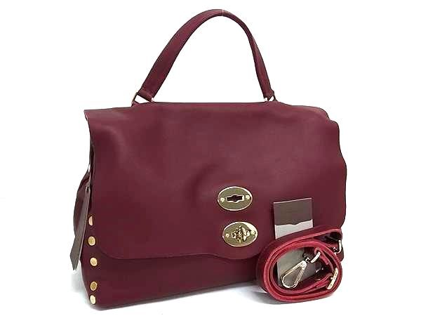 - 1円 ■極美品■ ZANELLATO ザネラート POSTINA ポスティーナ レザー 2WAY ハンドバッグ ショルダー 肩掛け レディース ボルドー系 EA3478